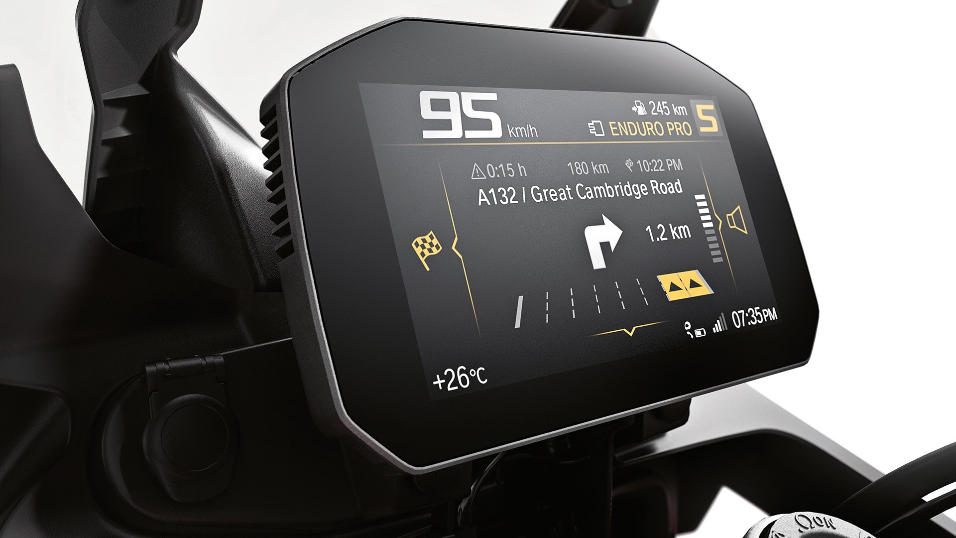 With the Connectivity optional equipment you'll be fully connected and always have access to the information you need. The combination of a 6.5" TFT display and multi-controller on the handlebars allows you to intuitively control your features. Whether you want to easily navigate your way through the city via arrow navigation with the BMW Motorrad Connected App, make a phone call while riding or listen to the perfect song – thanks to Connectivity, you can keep your concentration on the road and have an overview of all the important information. The newly designed and updated app offers many optimized features and is perfectly suited for motorcycle navigation: With the "Windy Route" route option – and further interesting choices – you will experience the ultimate experience on your motorcycle.