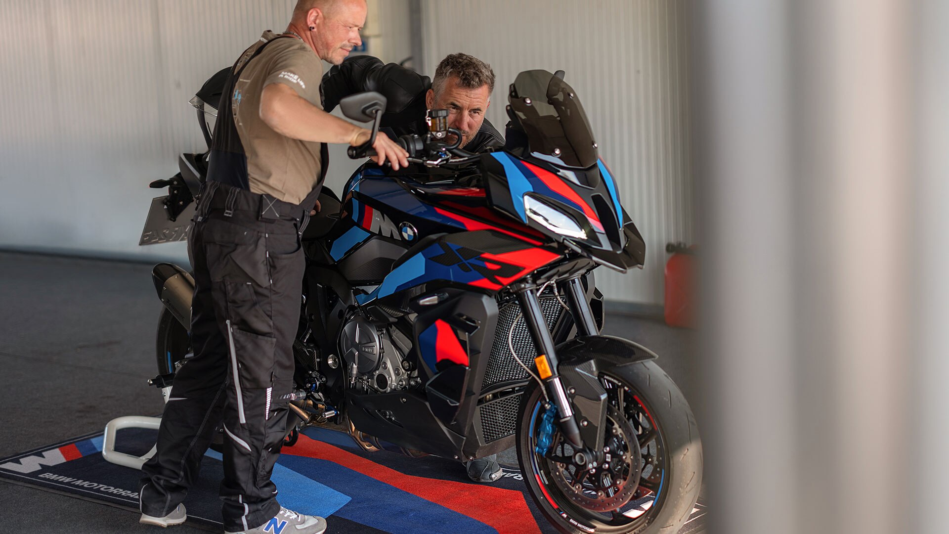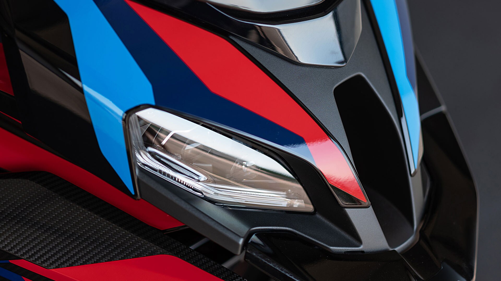 La performance a trois coloris : bleu clair, bleu foncé, rouge. Les coloris typiquement M donnent à la M 1000 XR son look unique. Lorsqu’elle est exceptionnellement à l’arrêt, vous pouvez y déceler l’amour du sport mécanique dans les couleurs, mais aussi dans de nombreux détails.