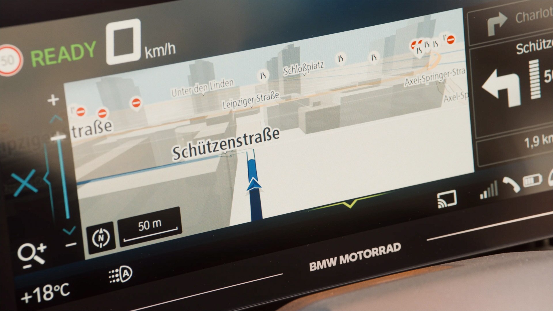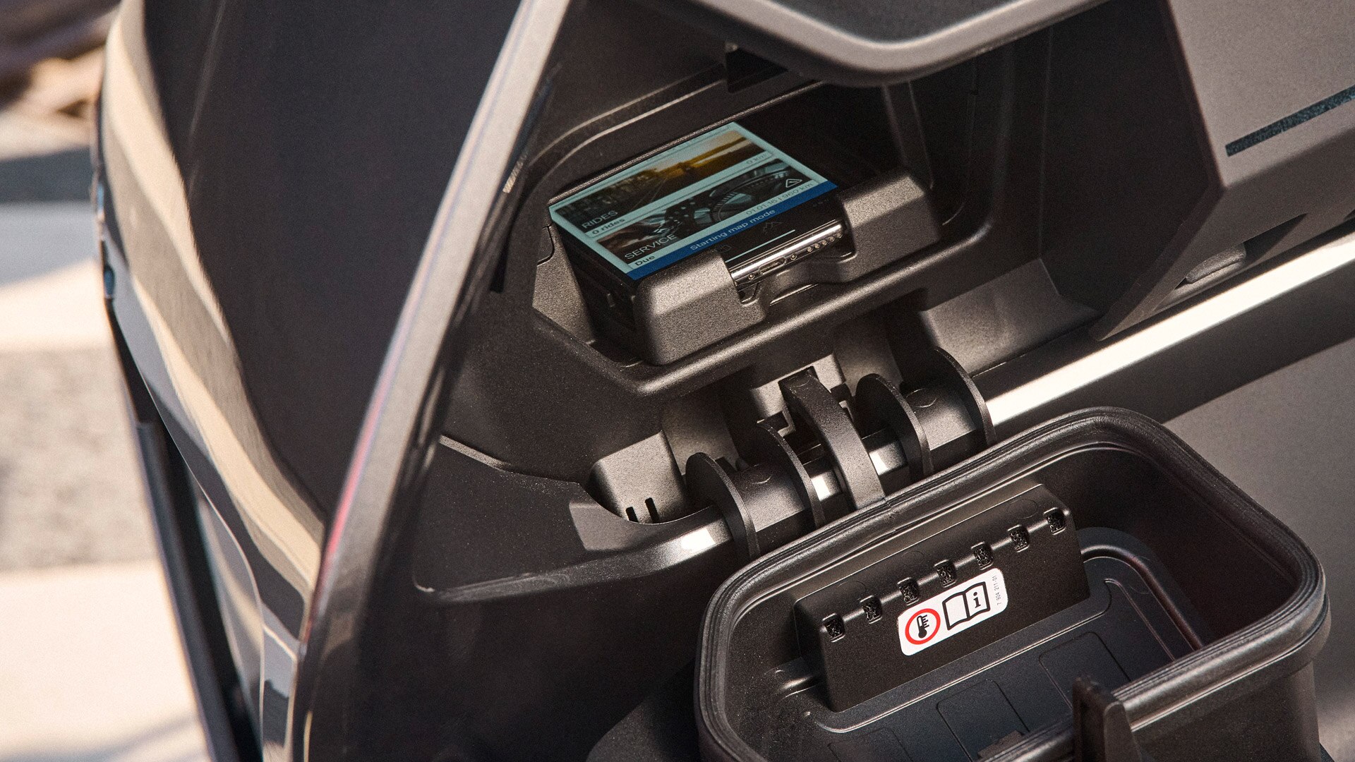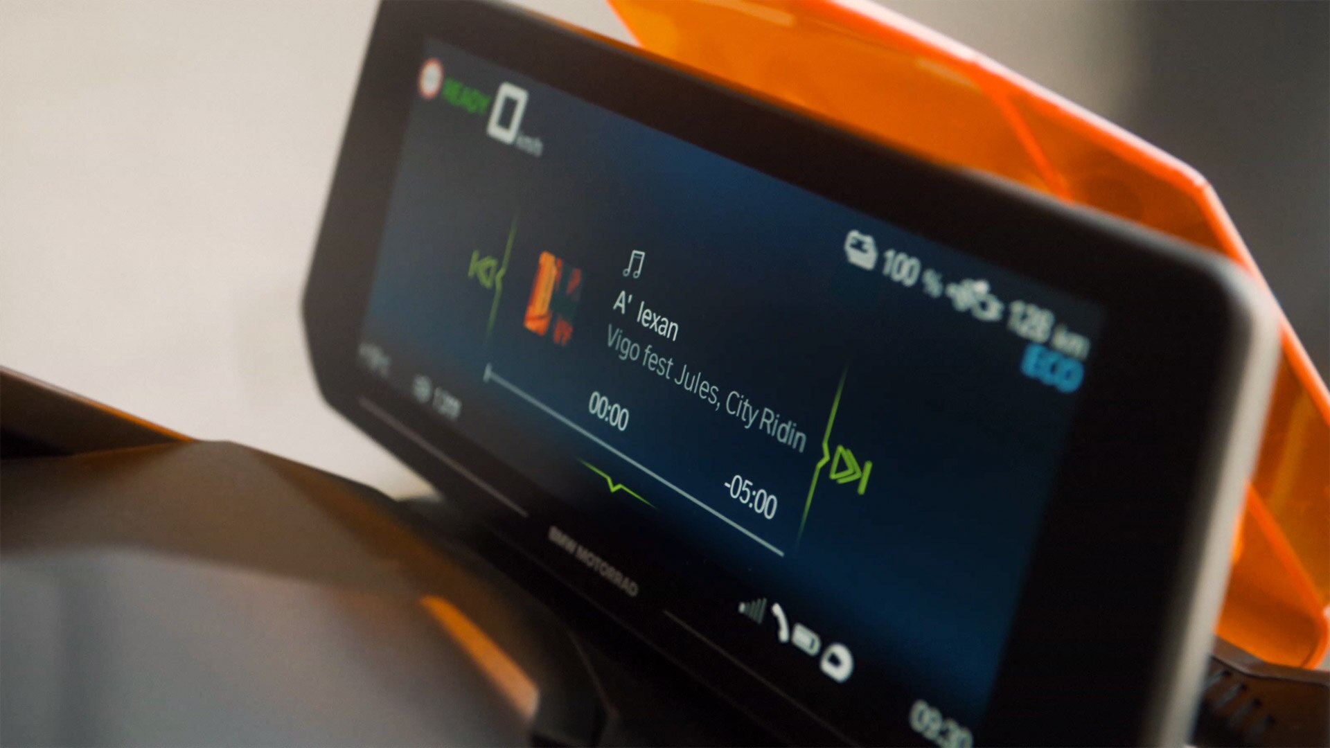 Ne rien rater, tout voir et profiter de tout. Le BMW CE 04 offre une excellente connectivité grâce à BMW Motorrad Connectivity et à l'appli BMW Motorrad Connected. L'écran TFT 10,25" avec option d'écran partagé se transforme en interface entre le monde numérique et analogique. Données de performance, autonomie, temps de charge, votre playlist préférée, votre prochaine destination ou une conversation téléphonique : aujourd'hui la mobilité et la communication vont de pair. C'est tout simplement votre quotidien. Votre smartphone simplement rangé dans un compartiment aéré et protégé de l'eau est en même temps rechargé via un port USB-C.